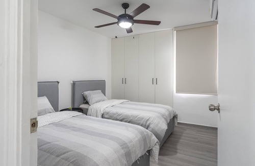 Welcome to our charming apartment in Panama, where design and comfort merge to provide you with an unforgettable experience! With 2 cozy bedrooms and space for up to 4 people, this 90 m² accommodation offers a pleasant and fully equipped environment.** Main Features of the Property **- Living Room: Equipped with Air Conditioning, Dining Table, Hangers, Bedding, Sofa, TV, Work Area- Fully Equipped Independent Kitchen: equipped with Baking Tray, Blender, Coffee, Coffee Maker, Freezer, Wine Glasses, Smoke Detector, Water Kettle, Oven, Dining Table, Microwave, Dishes and Cutlery, Cleaning Products, Toaster, TV, Basic Kitchen Utensils, Ceiling Fan- Bedroom 1: Equipped with queen (1.50x2.00m), Air Conditioning, Additional Pillows and Blankets, Wardrobe, Heating (Heat Pump), Desk and Chair, Clothing Storage Space, Hangers, Blackout Curtains or Blinds, Bedding, Ceiling Fan.- Bedroom 2: Equipped with 2 single beds, Air Conditioning, Additional Pillows and Blankets, Wardrobe, Heating (Heat Pump), Desk and Chair, Clothing Storage Space, Hangers, Blackout Curtains or Blinds, Bedding, Ceiling Fan,- Bathroom 1: en-suite bathroom in the master bedroom equipped with Shampoo, Shower Gel, Cleaning Products, Hair Dryer- Bathroom 2: Equipped with Shampoo, Shower Gel, Cleaning Products, Hair Dryer** Main Features of the Area **The apartment in Obarrio, Panama City, is located in one of the most dynamic areas of the city, ideal for those looking to live in the center of the action. With easy access to public transportation, renowned restaurants, shopping malls, and a vibrant entertainment offering, this space is perfect for those who enjoy the diversity and cosmopolitan lifestyle that Panama has to offer. Additionally, its proximity to iconic areas such as the Old Town, Multiplaza Pacific Mall, and the Cinta Costera will allow you to enjoy both urban life and moments of relaxation and spectacular outdoor views.** Included Services (Free of Charge) **- Towels and bedding.- Internet access (wifi).- Bathroom amenities (shampoo and shower gel doses).- Use of washing machine (Washing products not included).- Coffee, sugar, salt and oil single-dose- Cleaning products** Services Not Included in the Price (Subject to Availability) **- Crib: Check availability and rate.- Extra cleaning service: Check availability and rate.- Early Check-in: Check availability and rate.- Late check-out: Check availability and rate.- Airport transfer: Through an external company. Check availability.** ZZCC Description **The building has a 100 m² community terrace with a pool, which offers an exclusive space to relax and enjoy the tropical climate. It has an outdoor shower, as well as comfortable outdoor furniture. The pool is shared only with the other guests of the building, ensuring a quiet and private environment.** To Keep in Mind **At the time of Check-In, it must be done in person at the building\'s security booth, where the keys will be handed over. If you have any questions, our customer service team will assist you online 24/7, answering any inquiries as soon as possible.Additionally, if necessary, our Staff can go to the property to resolve any needs.