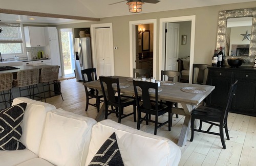 Elegantly appointed, with new subway tiled kitchen, granite counters, stainless steel appliances and matte black fixtures throughout, the 3-bedroom, 2-bath (+ heated outdoor shower), luxury cottage overlooks a 40-foot, heated pool (please reference heating rates). Gracefully spaced steps span the entire front of the pool so you can lounge in shallow water enjoying a drink, reading, or simply admiring the view. Outdoor teak table and 4 burner gas grill for al fresco dining. Enhance your enjoyment by playing outdoor Foosball on our vast deck or classic French Pentanque (similar to Bocce) on the court nestled between the vineyard and pool.
