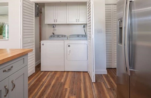 Laundry Area – Washer, dryer, and iron/board