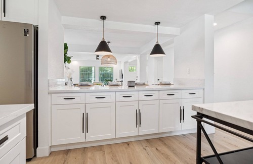 This home is completely renovated . Be ready to entertain! You will walk into a beautiful open concept living/dining/kitchen and pool table. This house 4 bedroom, 3 full bathroom. Holds up to 10 guests 1 King Sized Beds, 1 Queen bed , 1 Queen bed & 2 Full beds,1 twin bed and additional queen-size air mattress. Includes 2 car garage with a and a nice peaceful backyard to relax!. with beautiful Pool, BBQ & fire pit!. Great place to spend time with family and friends You will find that our home has everything you need to have a comfortable stay. Great for business professionals, families, or groups of travelers. Includes games for kids and adults, a well-stocked kitchen, and bathrooms stocked with amenities! Only a few minutes to grocery stores, gas stations, restaurants and more.