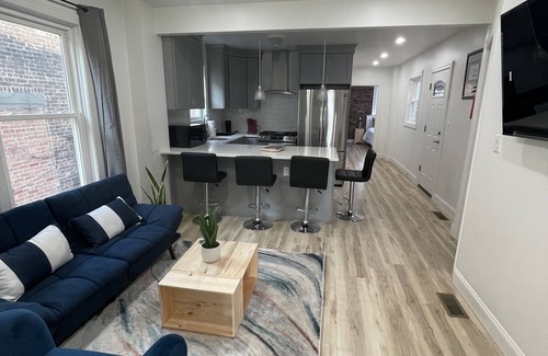This unique modern apartment is fully furnished with 3 bedrooms that can accommodate comfortably 6-8 people. The Apartment has free high-speed WIFI, fully equipped kitchen with dishwasher, Wall Mounted Flat TV , central air-condition and beautifully preserved wooden floors. It has its private backyard with BBQ grill. Apartment is conveniently located 15 minutes away by walk to Journal Square Path and 10 minutes to New York City from there.