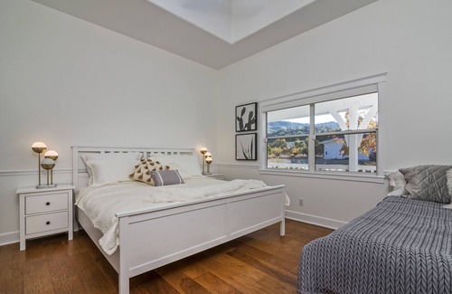 This modern farmhouse is designed to bring those closest together to enjoy the fresh air and Ojai’s famous sunsets with a wrap-around porch, large grassy areas for games or meditation, playhouse, outdoor kitchen, and fire pit next to this resort-style pool equipped with hot tub and waterfall. The pool can be heated. Please inquire, as there is an additional fee. Caretakers subject to work on and around the property during your stay. Please note that this property is shared, and caretakers may be present for maintenance tasks, including gardening and orchard upkeep and pool maintenance.