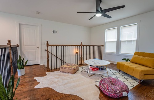 Welcome to our newly renovated, globally-inspired modern home right in the heart of East Point, GA. Nestled in the historic Egan Park neighborhood, we ae within minutes from Downtown Atlanta, Woodward Academy, Tyler Perry Studios, and Hartsfield-Jackson Atlanta International Airport. Guests will have access to start-of-the-art appliances, Keurig coffee machine, covered front and back porch with outdoor fans, local park with playground and bonus loft space. Easy to get around in rental car or ride share.