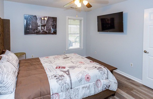 "Modern Madison Townhouse" is nestled in a quiet community. This 3 bedroom (1 King,1 Queen & 1 Twin/w trundle), 2 full baths, "Smart Home" has 1 bedroom downstairs and 2 bedrooms (one is a loft)upstairs, lots of TV's, an equipped kitchen, a quaint office space, and washer/dryer. You can relax in this stylish, private, sun filled townhouse just a hop, skip, and jump from everywhere you want to be. Comfortable new beds and furnishings, 2 car reserved parking space. Disney Plus, Hula, ESPN wifi.