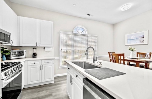 Fully appointed kitchen with appliances, including stove, oven, refrigerator, dishwasher, Keurig coffee machine and microwave. Bedrooms are comfortably furnished with fresh crisp new linens, pillows, bed coverings, and Smart TVs. Master bedroom features a en-suite bathroom as well as private access to the backyard.