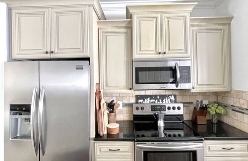 This home has been thoughtfully curated for guests seeking a true home away from home experience with comfortable beds, a living room with a large sectional for lounging and a fully equipped kitchen for preparing any or all meals while on the go.