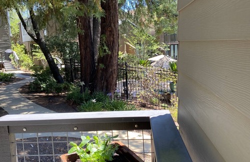Enjoy floor to ceiling windows, amazing light and a beautiful grove of Redwood trees. Private deck with outdoor fireplace. Pool, jacuzzi, Viking bbq grill. Walking distance to the Farmers' Market, and popular farm-to-table restaurants like Little Saints, The Matheson, Campo Fina, plus shopping and local wine tasting experiences.