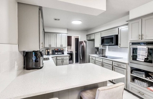 Stay comfortably in Oklahoma City at this 3-bedroom house. This beautiful property offers a soothing and tranquil atmosphere for guests to unwind and relax. The bedrooms feature a king bed, a queen bed, and a bunk bed, ensuring a restful night's sleep for everyone. The bathrooms are well-equipped with amenities such as a shower, bathtub, and hair dryer. In addition, there is an inviting living room with a cozy sofa bed, providing extra space for relaxation. To go along with that, there are also tons of retro games for guests to enjoy. Property is minutes away from all the popular restaurants, mall, I-Fly, Top Golf and Main Event. Fall in love with Oklahoma City and enjoy the magic it has to offer.