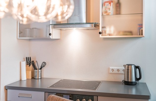 You can prepare meals in the fully equipped kitchen, which includes a dishwasher and a coffee machine.