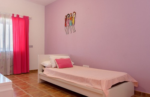 With breathtaking ocean views and an unforgettable pool area, the holiday home Villa Bene La Asomada is located in the village of the same name, nestled between the gorgeous National Park of Timanfaya and the pristine beaches of Puerto del Carmen. The modern villa consists of a living/dining room, a spacious, open-plan kitchen, which is fully equipped for your culinary comfort, 4 bedrooms (all with double beds and one with an extra single bed) as well as 4 bathrooms and can therefore accommodate 9 people. Additional amenities include Wi-Fi, satellite television, a barbecue, a washing machine and a highchair. The highlight of the villa is unquestionably the extensive outdoor area, which features a spacious veranda with spectacular views, a private garden, and a large pool equipped with umbrellas and a covered terrace furnished with sun loungers. Unwind, enjoy a glass of wine in the fresh air, and enjoy the magic of Lanzarote! While there is a limited selection of shops in the village of La Asomada, the city centre of Tías, just a 9-minute drive or 5.5 km away, awaits you with an array of restaurants, bars and cafes. Meanwhile the beautiful, sandy beach Playa Blanca in Puerto del Carmen is a 12-minute drive or 7 km away.