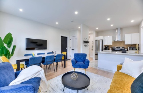 This fully furnished 3BR home features radiant heating, A/C, and a bright semi-basement layout with large windows. Includes queen beds, workspace, 1.5 bathrooms, and a full kitchen with modern appliances. Designed for families, professionals, or small groups looking for a cozy, functional stay.