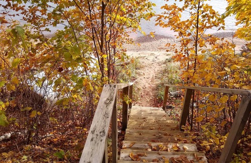 Find yourself staying at a true beach house on Madeline Island. This property is new for 2020 and has its own sandy beach. Walk out the door with your beach towel, beverages and snacks. You are right there. Need to restock your supplies walk up the 12 steps and get what you need. This property has spectacular views of barrier beach (the State and Town parks) and Michigan. Bring your paddle-board, kayak or water toys (that you can carry to the beach). Spend your days just lounging and letting go of the stress of city life.