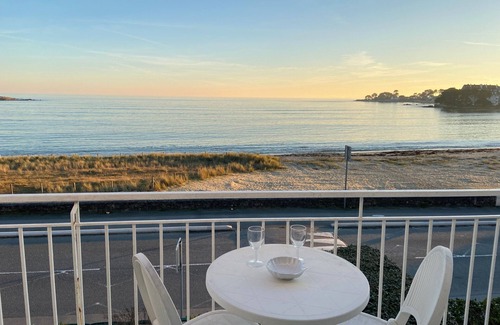 Apartment located in the heart of the Quiberon Bay, between Carnac, its megalithic alignments and its fine sandy beaches, and La Trinité sur Mer, a pretty marina.Apartment in a small building facing the sea and the beach of Men Du. Located about 900m from a supermarket and 1800m from the shopping centre.Apartment of about 58m², located on the 1st floor, with a balcony with sea view. Main exposure South. Wifi.Above a raised ground floor apartmentEntrance leading to:A living room of about 27m² with 1 French window opening onto the balcony, facing the sea and 1 single bed. Television.Equipped kitchen with gas stove, refrigerator, microwave.1 bedroom with 1 double bed (140cm) and a bay window opening onto the sea view balcony.1 bedroom with 2 single beds (90cm).Shower room: shower and double sinks.Separate toilet.Courtyard, 1 parking spaceCommunal room for bicyclesWashing machine. WIFI.Arrival: 4pm-6pm Please notify in case of late arrival.Deposit: €350 to be paid on siteCharges: Flat rate of €44/week for heating in addition if needed in low and mid season.Tourist tax: to be paid on sitePet: allowed (€25 supplement)Linen not provided: rental option availableEnd of stay cleaning to be done by yourself or additional charge.