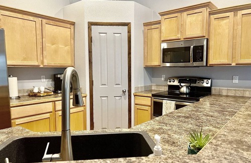 • Fully-equipped kitchen with stainless steel appliances (side by side refrigerator & freezer with ice maker & filtered water, oven & glass stovetop, microwave, & dishwasher) with all necessary cooking utensils (pots/pans, flatware, dinnerware, etc.)