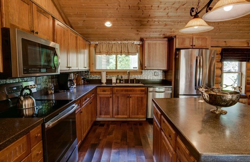 While the log home is only a 3-bedroom, it was built for "family vacations", and the gathering of groups, so additional sleeping areas were constructed to allow for plenty of kids, and/or multiple generations. The layout offers full privacy for adults, with spaces suitable for lots of children.