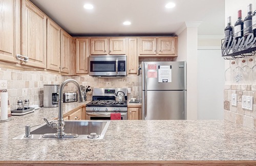 Upon entry, you'll be met with a bright interior and a warm feeling of welcome throughout the space. Relax and make yourself at home by resting on the plush furniture, watching movies on the large TV, or curling up with a good book by the warm, crackling fire. If you still have some energy to burn, go for a refreshing dip in the on-site pool. Hobby chefs will love preparing grand meals and on-the-go snacks in the sophisticated galley-style kitchen, equipped with stainless steel appliances and a breakfast bar.
