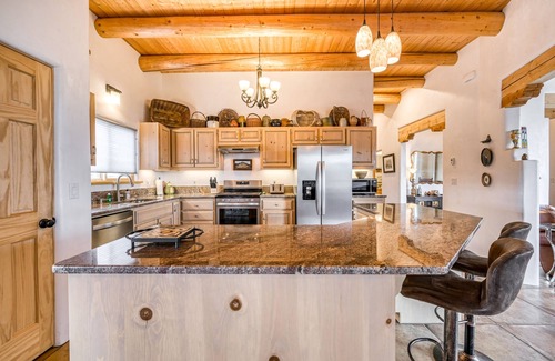 Mountain view home with a fireplace, hot tub, washer/dryer & gas grill is located in Taos. Mountain view home with a fireplace, hot tub, washer/dryer & gas grill provides accommodation, featuring Security/Safety, Bedding/Linens, Wellness Facilities, among other amenities. This House features Security/Safety, Bedding/Linens, Wellness Facilities, to make your stay a comfortable one.