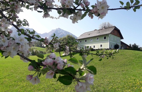 Our farm is located on a plateau in Spital am Pyhrn in the National Park Kalkalpen. We have a quiet single location with plenty of space to play and relax in the garden. A playground, piles of sand a lot of swings and slides and our animals are always happy to visit. In the farmhouse there are 3 newly renovated apartments which provide space for cozy hours and have balconies with stunning views.
