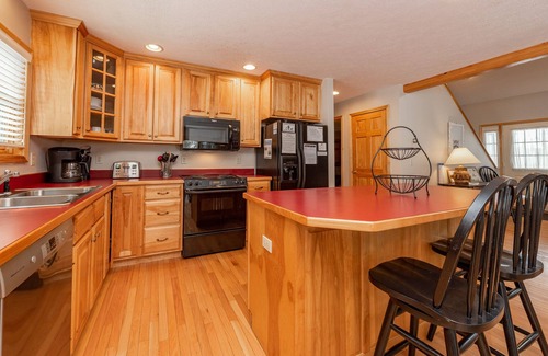 Soar to great heights at Mountaineer! Freed from the burdens of everyday life, emerge refreshed, renewed, and ready for adventure in this charming three-bedroom chalet. Located on a lush wooded lot in the popular Mountainside Community, this home delights with cozy home furnishings, ample seating, and more. The home’s charming wrap-around deck is destined to be a family favorite. So, take a seat and stay a while! You’ll love hanging together on the front porch, sipping lemonade from the rocking chairs and watching the day unfold, the forest around you singing with the sweet sounds of nature. In the summer months, your home’s lake access is just a short drive away. Mountaineer is a must!