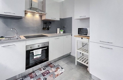 The apartment, located on the ground floor of a traditional turinese building, has modern furnished living room with a sofa-bed, a kitchen fully equipped, a bathroom with a shower and a washer-dryer and a master bedroom.