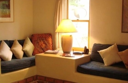 Keywords: Charming adobe casita on the historic Acequia del Cano. Quiet with private walled patio with sunset view of the baranca and dining under the heirloom apricot tree. Santa Fe country style furnishings with vigas, kiva fireplace, saltillo tile floors and more. Perfect for guests with chemical sensitivities.