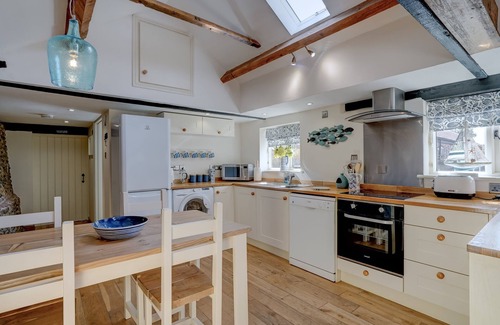 Natterjack is one of five modern barn conversions situated down a quiet loke in the centre of Winterton-on-Sea. The front door leads into an open plan living area with comfortable seating and dining for up to four guests. There's a TV, and the well equipped kitchen includes a hob, cooker, fridge/freezer, dishwasher and washer/drier.