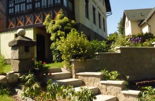 In a very beautiful region of North Bohemia, in the heart of the green triangle of the Czech Paradise, Jarmila and Didier settled in an old farmhouse in a small village, surrounded by forests and medium mountains. In the middle of a large garden, the place is calm and green. From the house you can travel by car, on foot or by bike and visit the natural or historical sites, castles or museums of this region, where glass work is one of the ancestral traditions.