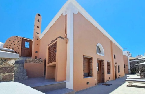 A luxury traditional cave house 85 m2. Only 20 min walk of the center of fira in the hart of the traditional karterados village . With 2 bedrooms and a double sofa bed in the living room .A great place to be .
