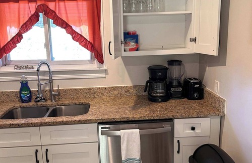 A stunning red door is the first thing you will notice upon your arrival! Once inside, the cozy living room, complete with queen size sleeper sofa and large flat-screen TV complete with Roku, welcomes you home! It's the perfect place to unwind after a day of exploring Savannah. Off the living room to your right is a small dining table with seating for four. Continuing into our fresh kitchen, you will find stainless steel appliances and all the basics guests need to settle in and feel "at home." Our home offers four bedrooms and two full bathrooms! The master bedroom is separated from the other three and offers a queen-size bed, flat-screen TV complete with Roku, and an ensuite bath. Bedroom #2 provides another queen-size bed; bedroom #3 has a full-size bed, and bedroom #4 is perfect for the kids with two twin-size beds. Guests will also have access to a washer and dryer as well as a fully fenced backyard. Our home is located close to a train track. This does not bother the majority of our guests, but some guests have mentioned that they can hear it over night.