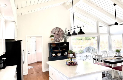 Our newly updated home features 1 CA King, 1 Queen and 1 full/double bed, and 2 full bathrooms. A fully stocked spacious kitchen and great room make it the perfect space for relaxing with family, cooking together, playing games or watching movies. With a large backyard you can really enjoy the outdoors watching the kids and pets run and play. This home features gorgeous large windows from the kitchen and dining area into the backyard bringing in so much natural light, with a fully fenced yard for privacy.