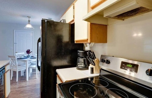 There are two hallways that will take you to the bedrooms and bathrooms. The hallway near the front door will take you to the master bedroom which has a king bed and a spacious ensuite bathroom! The hallway off the kitchen will take you to the other bedrooms and the shared bathroom! The second bedroom has a queen bed and there are two twin over twin bunk bed in the third bedroom! All bedrooms have closets for you to store your belongings during your stay!
