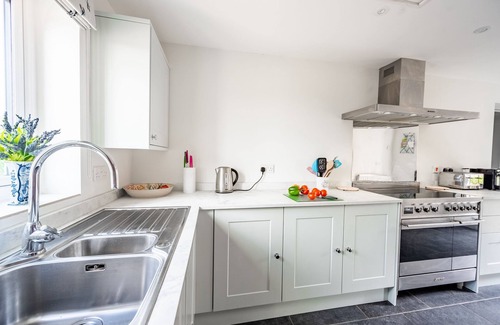 Upstairs, three good-sized bedrooms are available. Hosting a grand wooden king-size sleigh bed, the master bedroom is served by a stylish en-suite shower room with walk-in rainfall shower. A super-king zip and link bed, which can be converted into two single beds on request, is provided by bedroom two, with bedroom three offering twin beds. These two bedrooms are served by a spacious family bathroom featuring bath with shower over. All beds boast delightfully comfortable pocket sprung mattresses, with bedding dressed in high quality linens. With soft white decor, these bedrooms invite a soothing sleep. Outside a large south facing private garden is located at the rear of the house. Landscaped with two tiers and surrounded by a beautiful brick and flint wall, this space is the perfect sanctuary for relaxation, sundowners and al fresco dining.