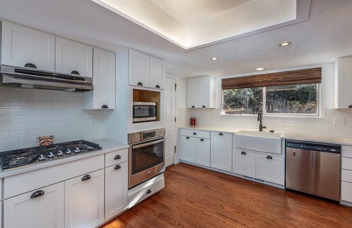 The 3 skylights and dozens of large windows allow sunlight and moonlight to illuminate the main floor and upstairs. Viewing the snow falling is sublime while soaking in the hot tub or sitting at the fire while listening to music. It's a totally romantic setting!