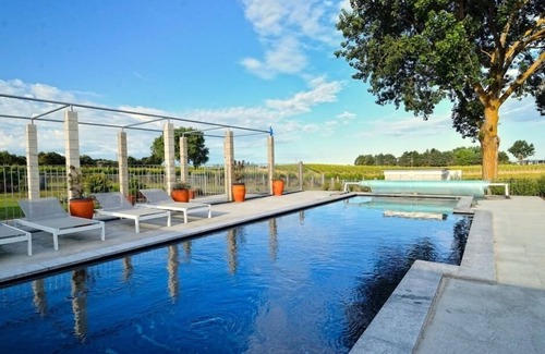 Set amongst vineyards managed by Sileni, with pasture land next door and views to the sea and Cape Kidnappers, the unit has been built to encompass the beautiful surroundings whilst maintaining a high level of comfort and privacy.