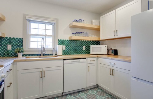 In a charming bungalow, just steps from the downtown hustle and bustle you will find Nestled on New Bern! You will love the bright and cheery newly renovated house with 2 king beds in each bedroom, the master bedroom en-suite and hall bath are dreamy! Walk up the street only 3 blocks to downtown, for coffee , dining or entertainment, or cook and then relax on the front porch, whatever makes you happy! Enjoy the adorable kitchen and large hallway with office and the wide open living area with 10 ft ceilings throughout and character galore! There are TVs and ceiling fans in both bedrooms,. There is private parking in the back off of a private street , and the cutest picket fenced In area in the front for the fur babies and kids to enjoy the yard. Nestled on New Bern is pet friendly and has all the charm and comforts to make you never want to leave!