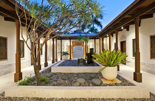 9 luxurious bedrooms are spread between the main house and guest house to optimize privacy. 7 have king size beds and ensuite bathrooms and 2 have 2 queen beds each and share a full bath and separate half bath. 4 bedrooms also feature outdoor showers and all rooms have air conditioning, ceiling fans, IDD telephones and smart TVs with cable and Netflix. Most rooms have refrigerators and personal safes. Some bedrooms can accommodate an extra bed for a small additional charge.