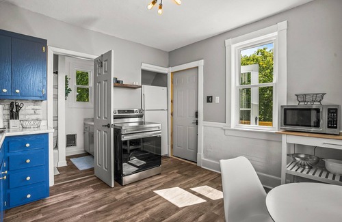 -You'll have all you need to make a gourmet meal - brand-new oven, stove, fridge, microwave,, Keurig coffee maker and all appliances/cooking essentials. What the kitchen lacks in size, it makes up for in amenities and style.