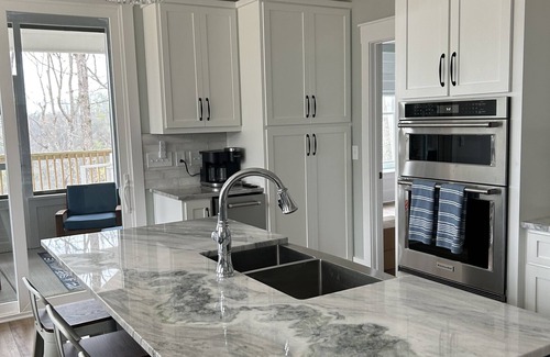 The kitchen has spared no detail and is fully stocked with all you will need to prepare a light meal or gourmet dinner. We have beautiful granite counter tops and double apron sink. There is a gas cooktop, 2 ovens, microwave, dishwasher and separate ice machine. We have provided an air fryer for your convenience. Wake up to the beautiful views and find your way to our combo Keurig/ coffee pot to help jump start your morning. There is seating for 4 at the bar in the kitchen. The dining area has a large table with seating for 9.