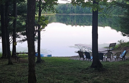 Escape to the serenity of the Northwoods at this cozy family cabin located on a private lake. Swim and play in the sand at beachfront, relax at the firepit, enjoy lake views listening to loons. Near popular ATV/hiking/snowmobiling/skiing trails! We offer kayaks, paddleboards, canoe, yard games, WiFi, laundry, gas fireplace, A/C and smores! Family friendly, pet friendly!