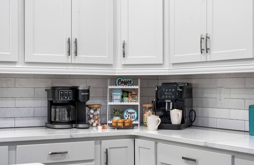 ● Gourmet coffee bar: Delonghi Automatic Espresso Machine, Keurig Duo, and an electric tea kettle. (We provide coffee beans & grounds, K-cups, sweeteners/sugars, and assorted teas)
