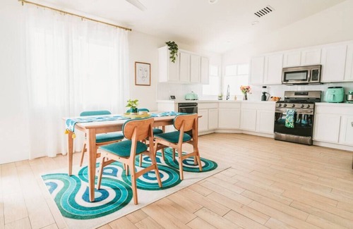 Funzie House is a newly renovated resort-style home near Palm Springs as of January 2023. Designed for group entertaining and relaxation with a brand new pool and hot tub, large bbq grill, turf, and cute umbrellas. Pet-friendly (house is thoroughly cleaned between stays)!