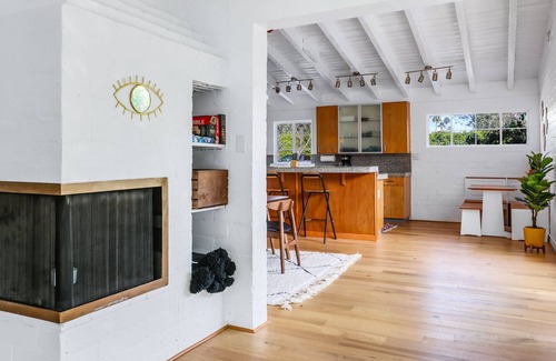 An original 50’s home, the mountain-view property has been beautifully updated inside and out - with no expenses spared. The home is surrounded by palm, olive, and fruit trees, as well as various flowers that attract hummingbirds and other colorful types. Past the courtyard and its water fountain, the walled yard features privacy bushes, as well as an electric grill, and room to dine alfresco.