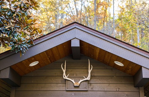 Our Signature Spa Suite with Fireplace offers a perfectly romantic escape to the mountains! Relax in a freestanding tub by the fireplace and enjoy a private porch overlooking the garden. This suite is on the ground floor. Sleeps 2.