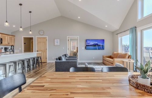 There's ample space for you and your crew in this 3,000 sq ft. 6 bedroom, 3 bathroom home that also includes an outdoor deck and patio with dining/seating, a fire pit, as well as two kayaks and a blow-up paddle board to enjoy your time on Beach Lake, a 5-acre man made catch-and-release lake. Should you choose to spend some time indoors, you are welcome to use all of the offered entertainment that includes plenty of board games, an arcade game, shuffle board, as well as a smart TV in both the upstairs and downstairs living spaces.