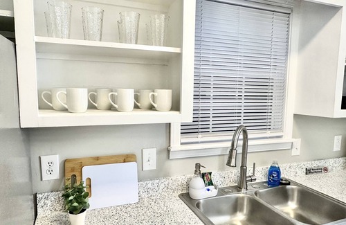 This fully furnished condo is stocked with your everyday needs such as pots and pans, plates, bowls, cups, cooking utensils, silverware, washer and dryer, plush hotel graded towels, and complimentary travel size toiletries (lotion, shampoo, conditioner, & body soap). Guests will love the comfort of the king size beds, Keurig coffee machine and coffee pods, ROKU stick to enjoy your favorite shows, and so much more! The wifi is high-speed and super fast which is perfect for working professionals. For those who need to stay a little longer, ask me about my short-term offer with competitive rates!