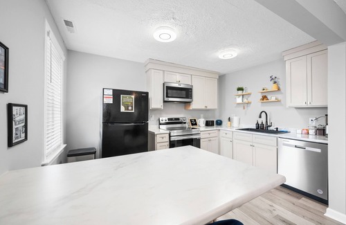 Welcome to Palm Oasis by Lazy Sunday Rentals! This vibrant downtown Noblesville apartment is perfect for those who love city life and nightlife. Feel the energy from the popular bar below and step outside to explore the lively local scene. Fully stocked kitchen, fresh linens, and essential comforts, this retreat accommodates up to 4 guests. Enjoy the perfect blend of convenience and excitement in the heart of downtown Noblesville!