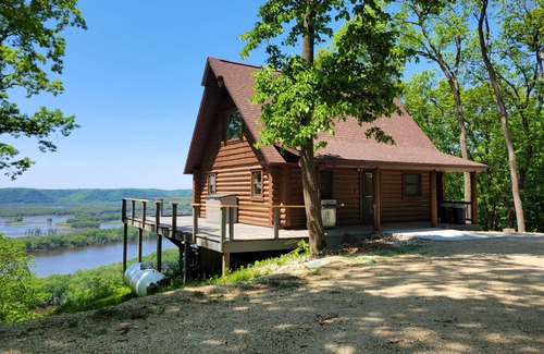 Enjoy breathtaking views of the Mississippi River while you relax, get cozy, and recharge in this newly decorated modern-rustic cabin situated high on the bluffs above the Mississippi River. Whether it is a family vacation, a girls/guys weekend, or a couples getaway you will enjoy the "Riverview Retreat " inside and out. Take in the views with coffee on the deck in the mornings or sitting around a campfire on the large paved patio with a cold beverage of choice in the afternoon/evenings. There is never a shortage of things to see, whether it is boats and barges going by on the river or birds soaring past the windows!