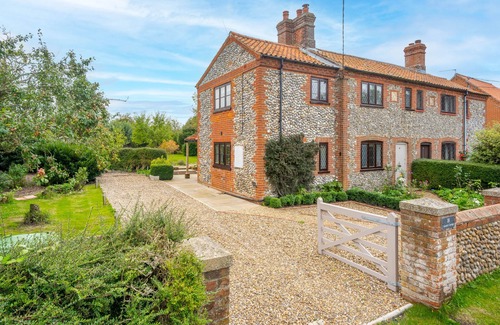 Annie's Cottage is a beautifully renovated three bedroom brick & flint cottage, tucked away in the sleepy village of Sharrington with a stunning garden and open countryside views from the front. The owners have created stylish modern interiors, whilst retaining the country charm of this traditional cottage; and outside the garden is a delight, with a dining patio and cleverly designed and planted gardens to create a relaxing and serene spot to escape the hubbub of everyday life. Yet, all this is still just three miles from the bustling Georgian town of Holt and within easy striking distance of everything the North Norfolk coastline has to offer.