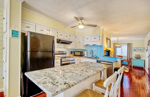 Added perks of this coastal condo include a private washer/dryer, complimentary WiFi, and cable, as well as access to a large community pool, outdoor grilling areas, tennis courts, and an outdoor shower. Beach gear like chairs, toys, and boards are provided.