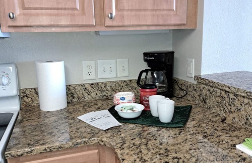 The master bedroom has 1 King-size bed, the guest bedroom has 2 queen-size beds. The new upgraded granite countertop kitchen is fully equipped with extra appliances, blender, coffee pot, toaster, and service for eight guests. The two upgraded full bathrooms have granite countertops.